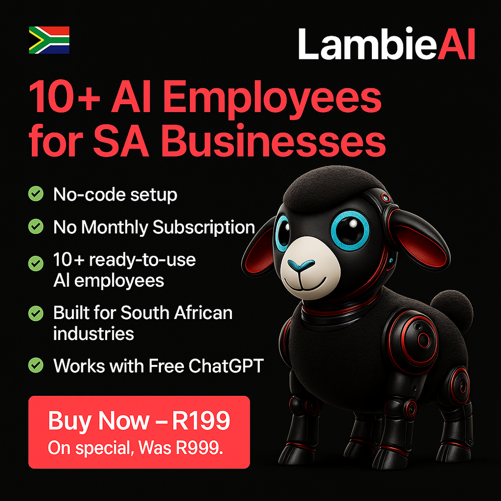 Get 10 AI employees built for South African hustlers, freelancers, and small businesses. From marketing to legal support, these GPT agents handle it all β 24/7, with no salaries, no stress. Instant access, works with Free ChatGPT, no subscriptions. Boost your business today!